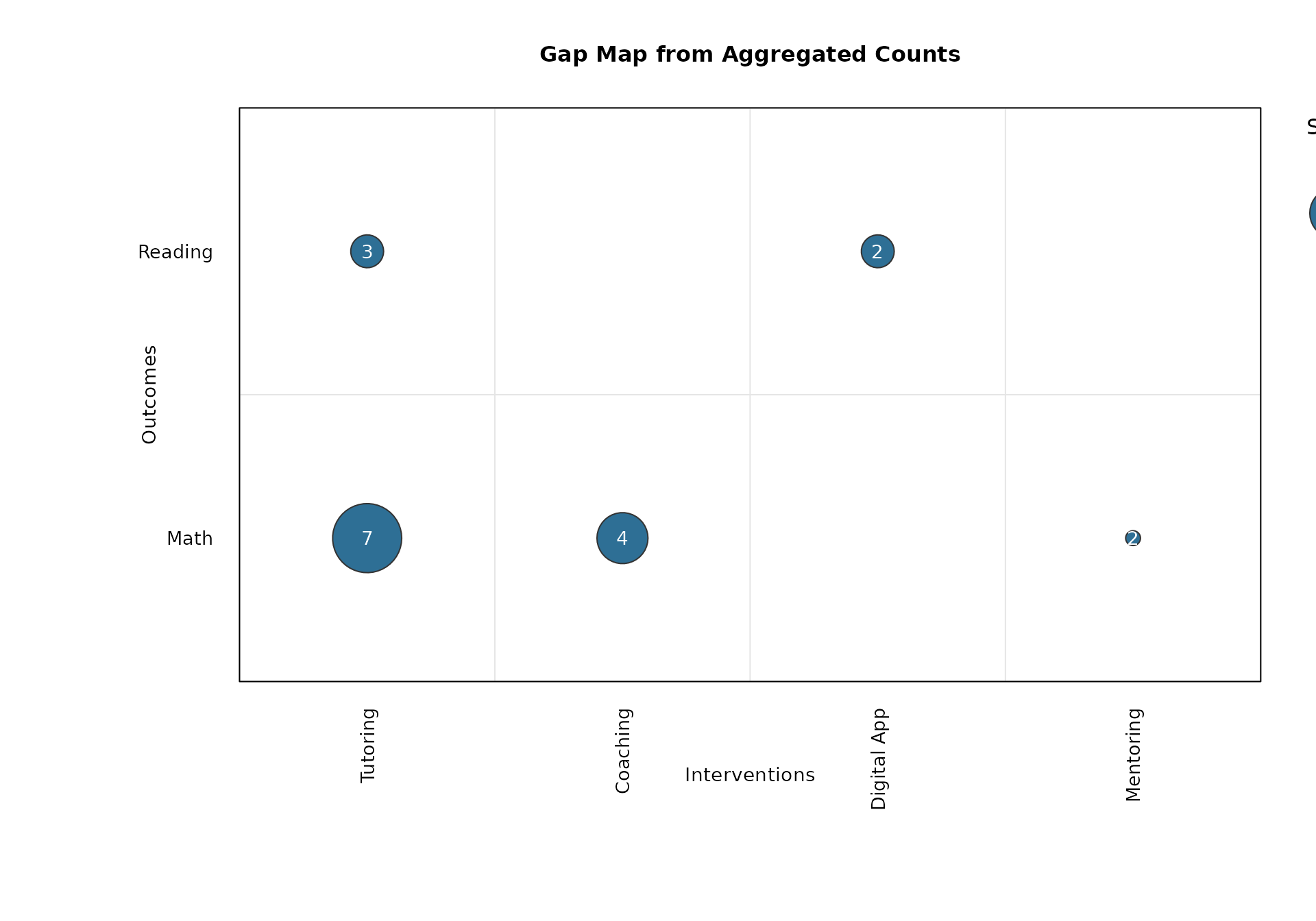 Evidence-Gap-Maps.RmdThis vignette shows how to create base-R evidence gap maps with