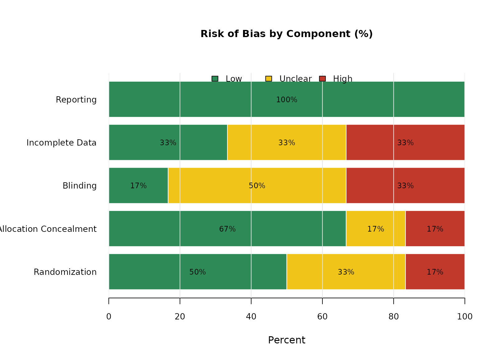 c("Randomization", "Allocation Concealment", "Blinding", "Incomplete Data", "Reporting"),